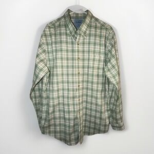 L.L. Bean Shirt Mens Large Green Plaid Button Down Long Sleeve Trim Fit