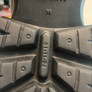 These trendy boots are in Like New condition. Elastic goring wraps around the back of the ankle to provide a stretchy, snug fit in this bold chelsea boot that's anchored on a chunky lug sole.