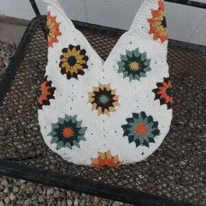 Boho Vintage Granny Square Tote Handbag Lined Hippie Bag