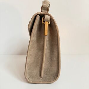 Yves Saint Laurent Cassandra Mini Top Handle Bag Beige Suede