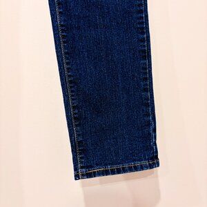 These dark wash Levi’s jeans feature a regular rise with a clean tapered leg for a modern, easy-to-wear fit. Crafted from a soft cotton blend with stretch, they offer comfort while keeping a structured silhouette. Perfect for everyday wear, styled casually with sneakers or dressed up with a sweater or blazer. In like-new condition, making them a reliable wardrobe staple.