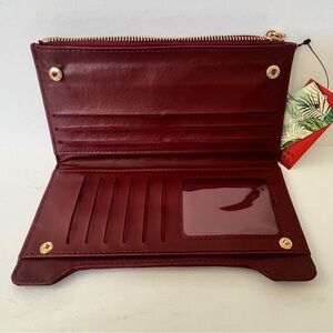 Studio Badgley Mischka Wine Maroon Quilted Long Cards Wallet NWT Vegan Leather