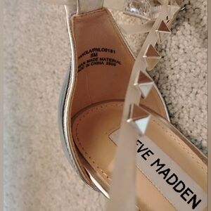 Steve madden womens silver clear strappy open toe sandals size 8