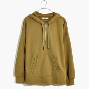 Pea green 1/4 zip hooded popover sweatshirt with kangaroo pocket. Women's size medium.