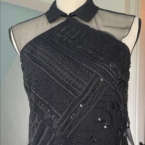 Vivienne Tam RARE Vintage Collared Halter Black Sheer Hand Sequined Womens Top 2