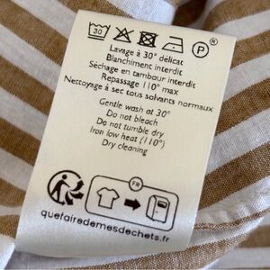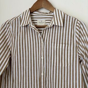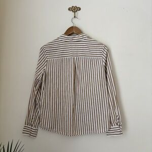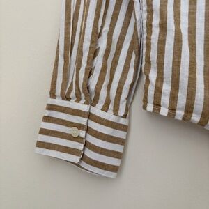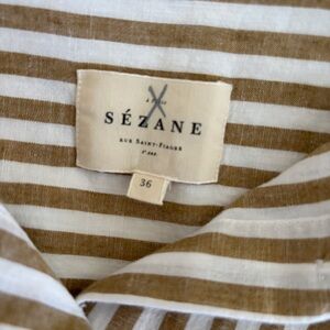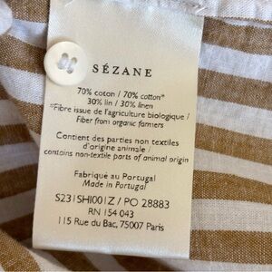 Sezane Tomboy Striped Button Front Linen Blend Shirt Sz 36 Small Ecru Camel