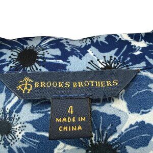 Brooks Brothers Bow Blouse Size 4 Blue Floral Long Sleeve Womens Button up Top