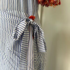THML Wrap Maxi Dress Women’s Large Blue White Stripe Tribal Fringe Tassels lined