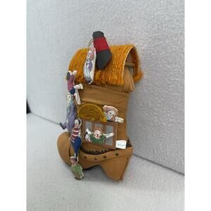 Charming VTG 1989 T&R Floyd plush ornament inspired by the classic nursery rhyme “There Was an Old Lady Who Lived in a Shoe.” Features a darling cloth figure and her festive red-and-green shoe house. A whimsical addition to holiday décor — perfect for collectors of rare 80s folk art ornaments or T&R Floyd designs.