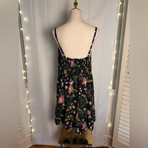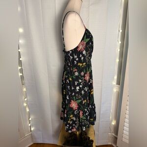 Chic midi dress with floral print. Features spaghetti straps. Perfect for casual outings.