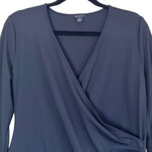 Ann Taylor Sz L Black Refined Stretch Wrap Top 3/4 Sleeve Fitted Feminine Office