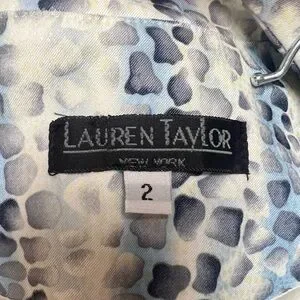 Lauren Taylor New York; size 2; blue splotches blazer with zipper front and functional pockets. PTP 18”