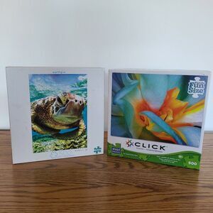 500 Piece Puzzle Lot - Set of Two - Turtle and Flower - Buffalo and Mega Puzzles