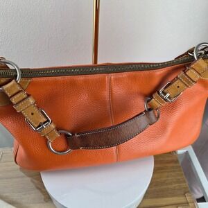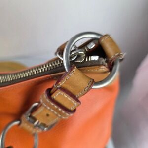 Dooney & Bourke Small O-Ring Slouch Shoulder Bag Orange Pebble Leather Purse