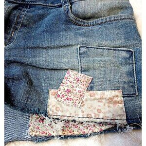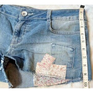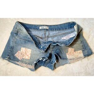 Lei Womens Ashley Jean Shorts Blue Stretch Patches Frayed Hem Low Rise Juniors 9