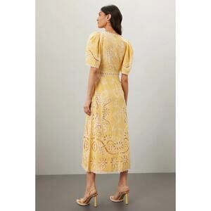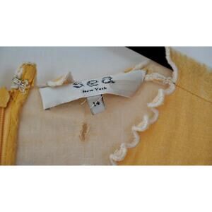 Sea New York Liat Embroidery Dress • Yellow Eyelet Cotton Midi • Boho Chic Sz 14