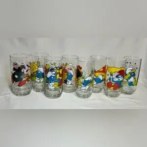 Vintage Smurf Glasses from 1982-1983, lot of 13