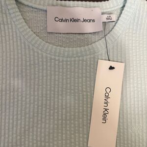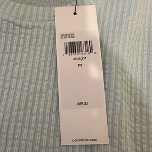 Calvin Klein light blue Ribbed 3/4 Sleeve cotton blend T-Shirt , Sz Medium, NWT