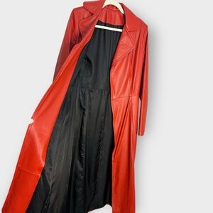 Vintage 1970’s Real Leather Full Length Red Open Coat
