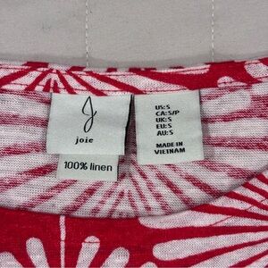 Joie 100% Linen Short Sleeve Tee Tropical Leaves Women’s Small Red Cream