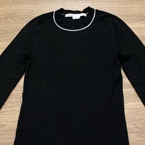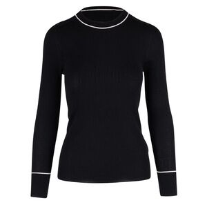 Veronica Beard Kinnie Ribbed Merino Wool Crew Neck Pullover Sweater Black Size S