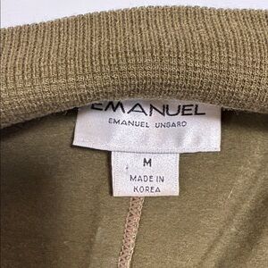 Chic khaki bomber jacket by Emanuel Ungaro. Features a sleek zip-up design. Perfect for versatile styling.