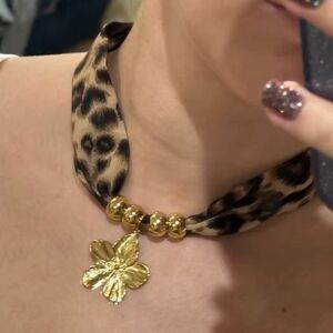 Trendy!!!! Make a fierce fashion statement with this unique leopard print scarf necklace featuring gold-tone beads and a stunning floral pendant. This stylish accessory combines soft fabric with bold metallic accents, offering a chic and trendy look.