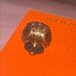 Chic black and gold/brass earrings by Kurt Geiger. Ideal for stylish outings. New without tags. Never worn. Velvet luxury branded pouch included. Eagle design is holding an emerald colored stone in his mouth