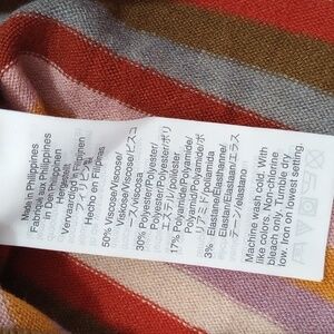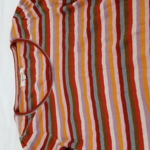 This is a Madewell multi color striped puff sleeve scoop neck top in a size XS. It has a hem starting to come loose, shown in pictures. It is a knit fabric.