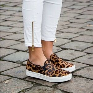 Step out in style with these chic leopard print slip-on sneakers. Perfect for casual outings, these shoes offer both comfort and fashion. They are in like new condition, no flaws.