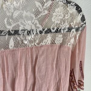 Boho Umgee Blush and Cream Lace Blouse with Embroidered sleeves in size large