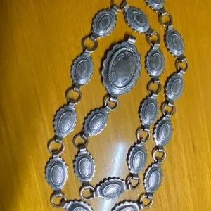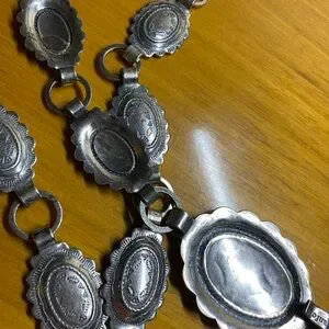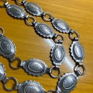 This belt is silver-tone and magnetic and is not sterling silver. It is a vintage Sancrest / Sanford fashion piece inspired by Southwestern design.