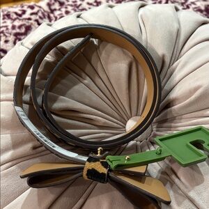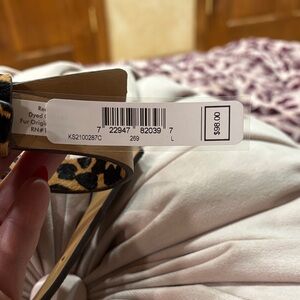 Stylish Kate Spade belt with animal print. Features a chic bow accent at buckle area. Brand new with tag. Women’s size large. Perfect for adding flair to any outfit. Genuine leather and dyed calf hair.