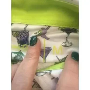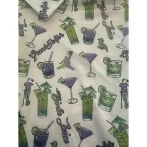 Men's polo shirt featuring a unique cocktail drink print pattern including mojitos, martinis, and other mixed drinks.
