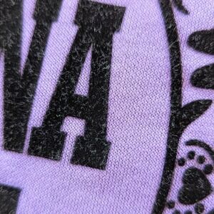 This dreamy Anna Sui collaboration sweatshirt features a rich purple "Royal Crocus" color with a raised velvet flocked graphic — giving it that luxe, soft-touch texture that feels straight out of a fairycore Y2K moodboard.