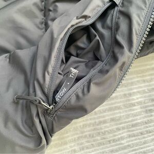 Stylish black puffer vest. Features a high collar and front zipper. Perfect for layering.