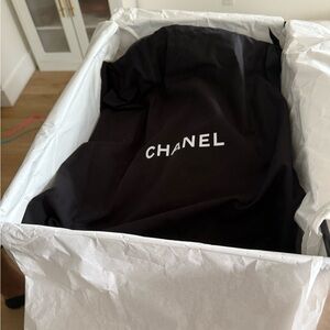 Luxurious accessory with rich burgundy interior. Features iconic Chanel branding.