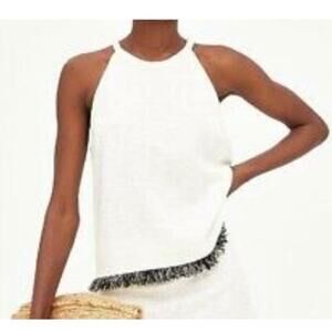 2/$30 ZARA Trafaluc Fringed Tweed Halter Top White Small #A0640