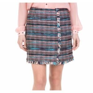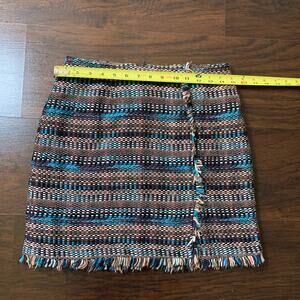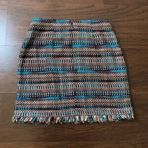 Juicy Couture Black Label blue and brown fringe tweed mini skirt size 6