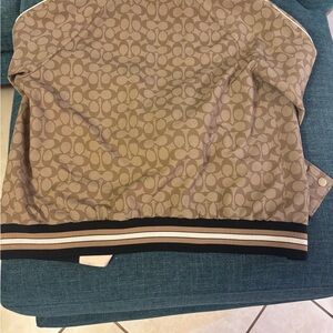 Stylish Coach jacket with signature pattern. Features tan and black colors. Perfect for casual wear.