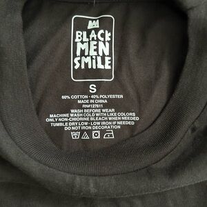 Comfortable black long sleeve tee. Features bold graphic text on sleeve. Perfect for casual outings.