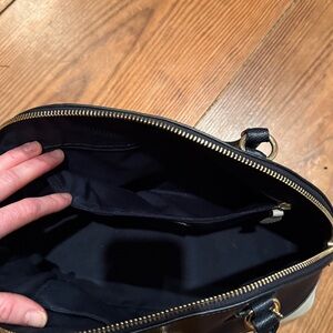 Chic Coach Cora satchel in navy and cream. Features gold-tone hardware. Perfect for versatile styling - comes with strap. Minimally used great condition