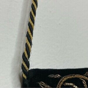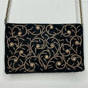 Beautiful black velvet with metallic gold-toned embroidery and pearl embellishments.