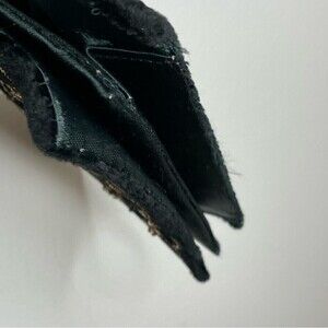 Interior is black satin & has three slip pockets, with a metallic gold-tone trim on two of the slip pockets.