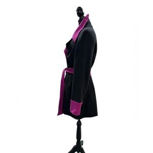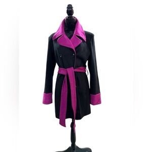 INC Black & Magenta Winter Contrast Modern Double Breasted Trench Coat Large