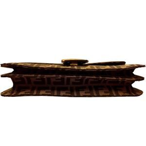 Fendi Tobacco Zucca Baguette Canvas Shoulder Bag with Leather Trim