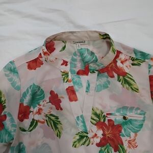 MILEAGE women'sCream and Red Peplum Blouse with Mandarin Collar Size L
