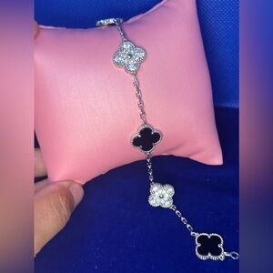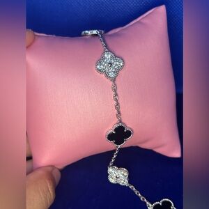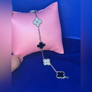 Lucky Alhambra SilverTone Clover Motif Bracelet With Crystals and Black …