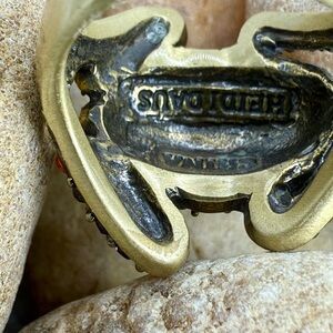 The frog’s sculptural body wraps comfortably around the finger, with intricate texturing and dimensional detail that showcase Heidi Daus’ unmistakable artistry. This ring is retired and no longer produced, making it especially desirable for collectors of Heidi’s animal and novelty designs.