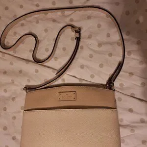 Kate Spade New York Beige Pebbled Leather Crossbody Bag – Adjustable Strap